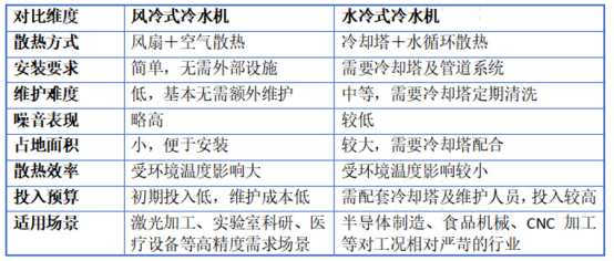 l空間有限、水源不足 → 風(fēng)冷式更合適。