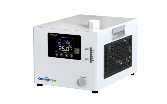 在微型制冷與高精度溫控領域,酷凌時代(Coolingstyle)多年來一直致力于提升換熱效率與控溫精度。其自主研發的直流變頻冷水機系列(如Q580、M160、Q5U3等)在換熱系統設計上融合了多項創新技術: