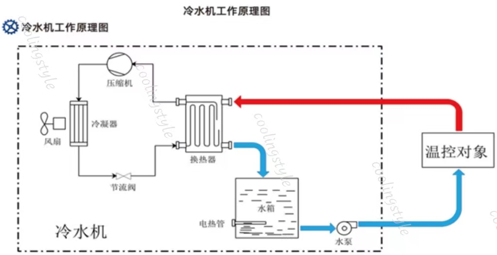 它是一種間接制冷方式,常用于大冷量、區(qū)域冷卻或多端口溫控應(yīng)用。