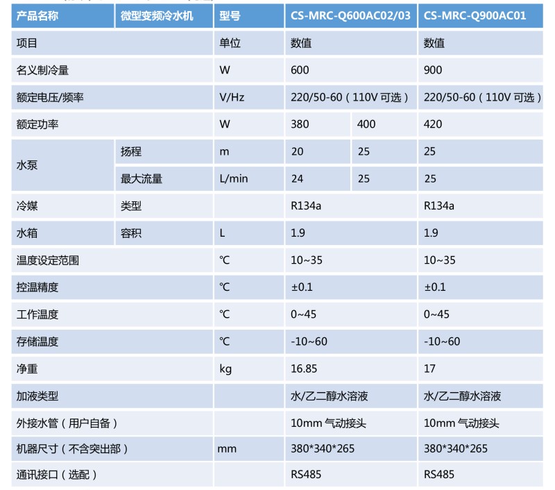 新品:微型變頻冷水機(jī)CS-MRC-Q600 / CS-MRC-Q900