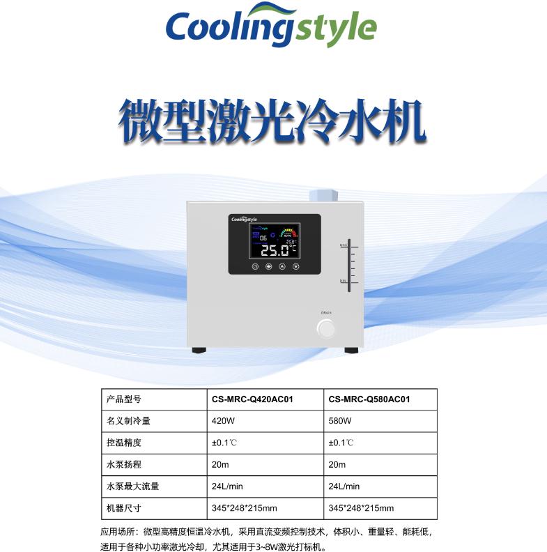 激光打標技術已被廣泛的應用于各行各業,為優質,高效,無污染和低成本的現代加工生產開辟了廣闊的前景。隨著現代激光標刻應用領域的不斷擴展,對激光制造的設備要求也越來越高,譬如我們的激光設備在實際運用應用過程中,溫度會不斷提高影響設備的正常持續高效工作,這個時候需要同時配備合適的激光器冷水機為其精準控溫降溫,讓整個設備應用更加高效率。深圳酷凌時代就是國內激光冷水機廠家之一,公司的高精度激光冷水機,超快激光冷水機、小型冷水機、微型恒溫冷水機、3D打印激光冷水機、柜式冷水機、風冷式冷水機、小功率激光冷水機等不斷合作與國內外各大企業及院校等,不斷合作應用于各行各業,再此特別介紹酷凌時代Q420升級系列微型恒溫冷水機