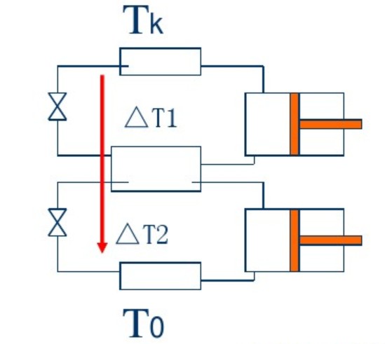 圖1. 二級單獨(dú)壓縮覆疊制冷基本原理