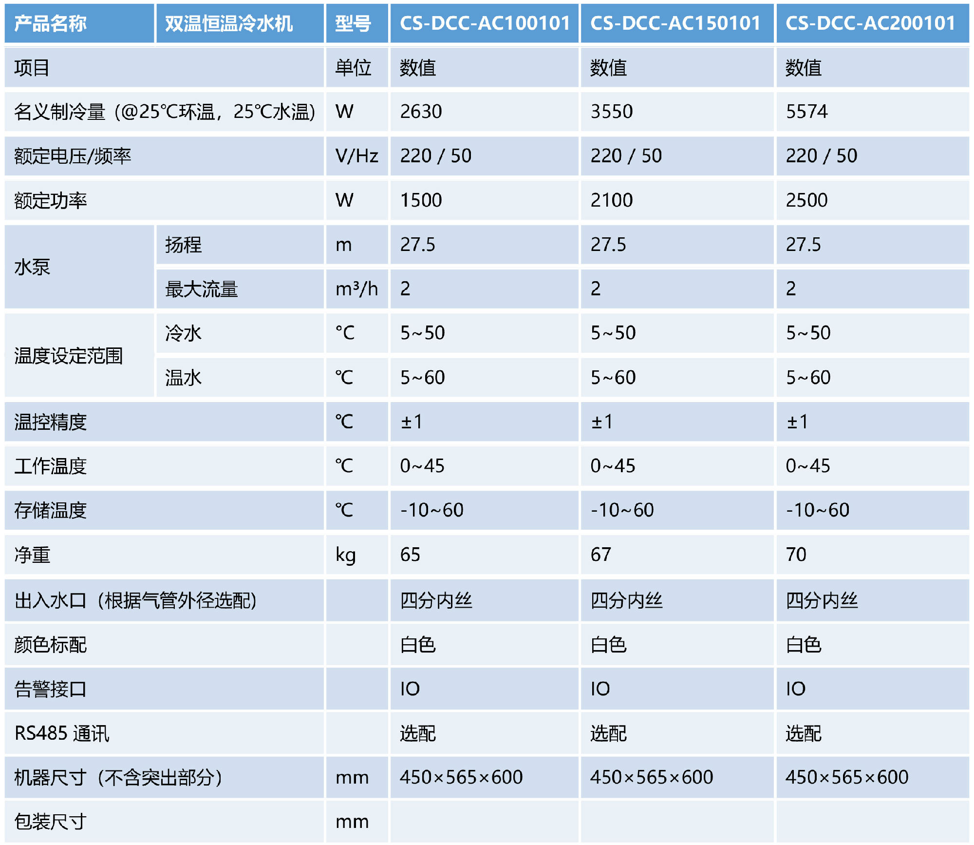 如上,是酷凌時代新推出的大冷水機的簡單介紹,客戶可根據自己的需求對應的選擇合適的型號。除此之外,酷凌時代還研發生產有高精度激光冷水機、微型激光冷水機、紫外激光冷水機、超快激光冷水機、3D打印激光冷水機等產品可供客戶選擇,滿足客戶的多種需求。